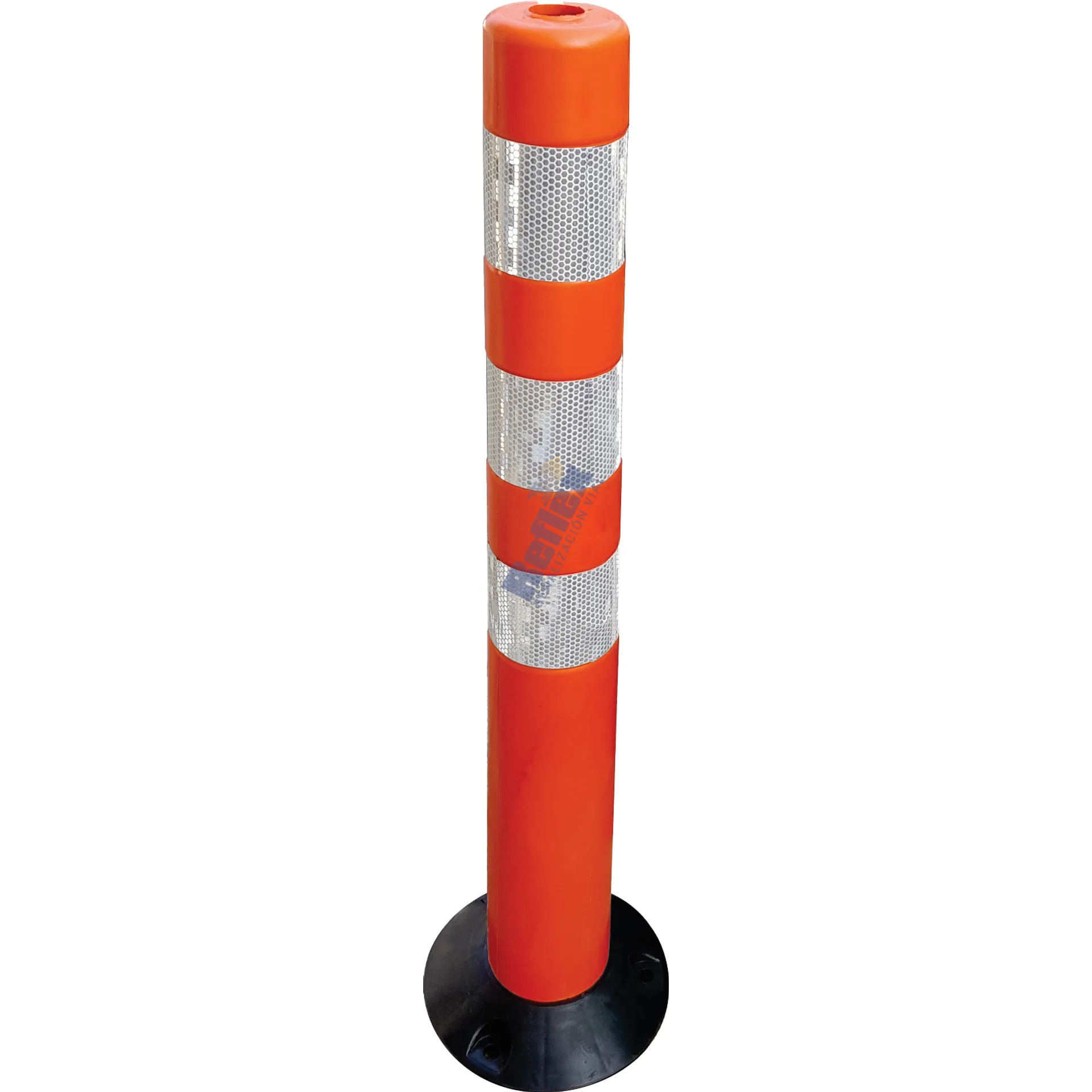 Hito vial flexible con tres cintas reflectivas. 80 cm Alto con 20 de base negra. Incluye kit de anclaje( Tornillo tirafondo de 3/8×4 1/2, chazo de 1/2×4 y arandela de 3/8)
