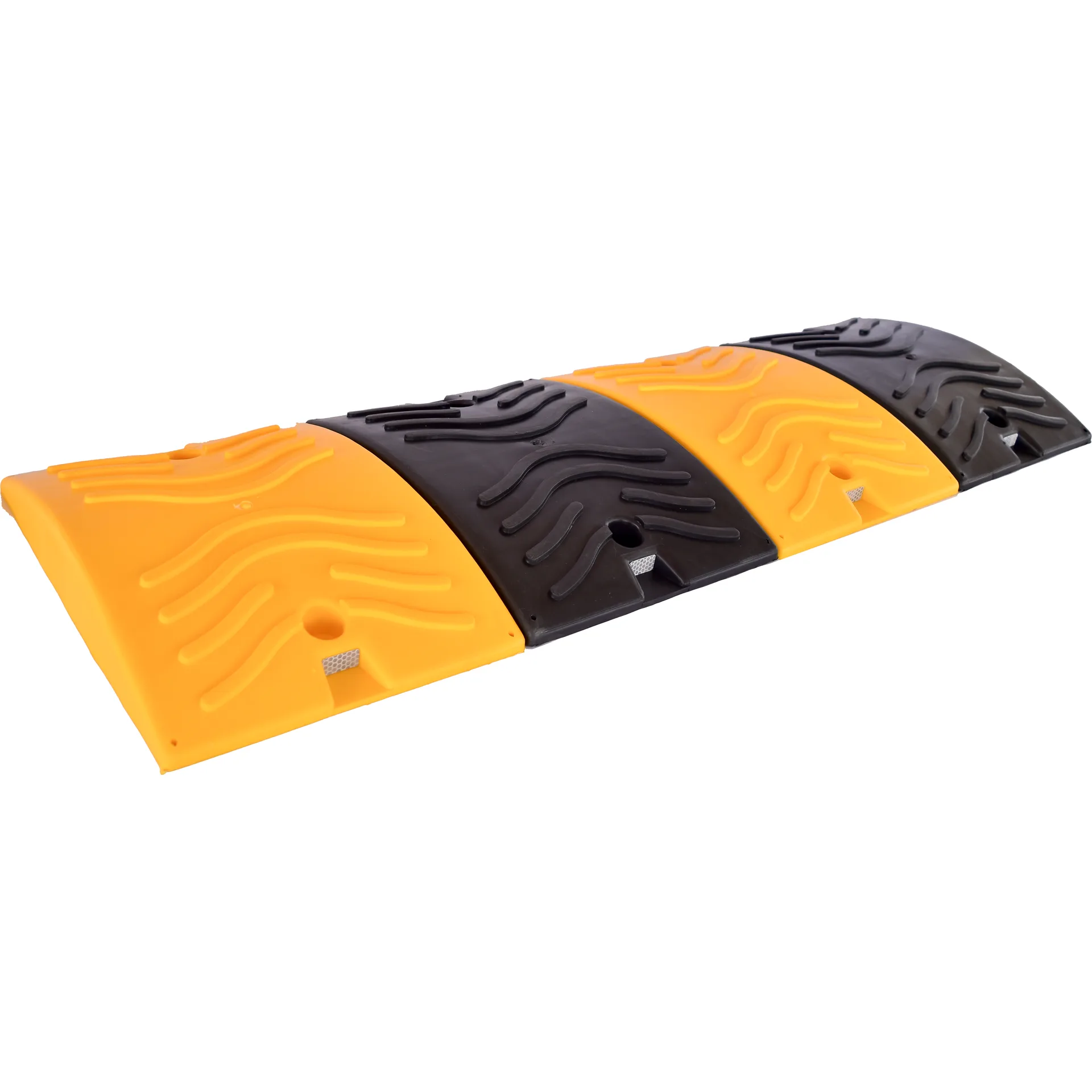 El resalto plástico urbano es un dispositivo de seguridad vial diseñado para controlar físicamente la velocidad de los vehículos en entornos urbanos. Está fabricado en polímeros de alta resistencia al impacto, tracción y flexión, lo que garantiza su durabilidad ante el paso constante de automóviles en zonas de bajo y mediano flujo. Su diseño modular permite formar tramos de diferentes longitudes y adaptarse fácilmente al ancho de la vía. Posee una superficie visible con excelente permanencia de color, resistente a la intemperie y libre de componentes tóxicos como el plomo. Cada módulo cuenta con perforaciones preformadas que facilitan su anclaje mediante tornillos tirafondo, chazos de nylon y arandelas, sin necesidad de obras civiles invasivas. Es una solución ideal para zonas escolares, residenciales, cruces peatonales y accesos vehiculares donde se requiera una pacificación efectiva del tráfico vehicular.